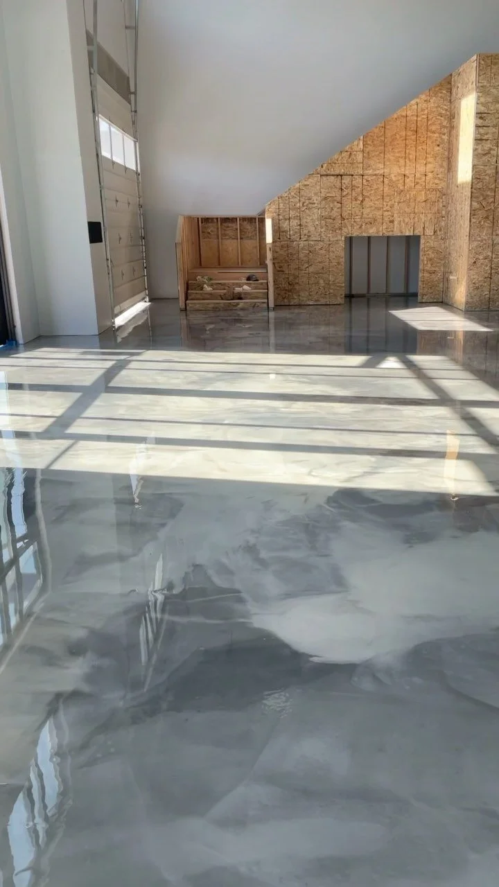 • We apply a self priming basecoat application. Whether it be for a colored flake floor, solid color epoxy or a beautiful custom metallic floor finish.